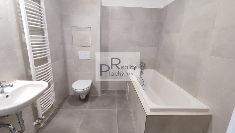 elegantní koupelna s vanou. Stačí si jen vybalit osobní věci.